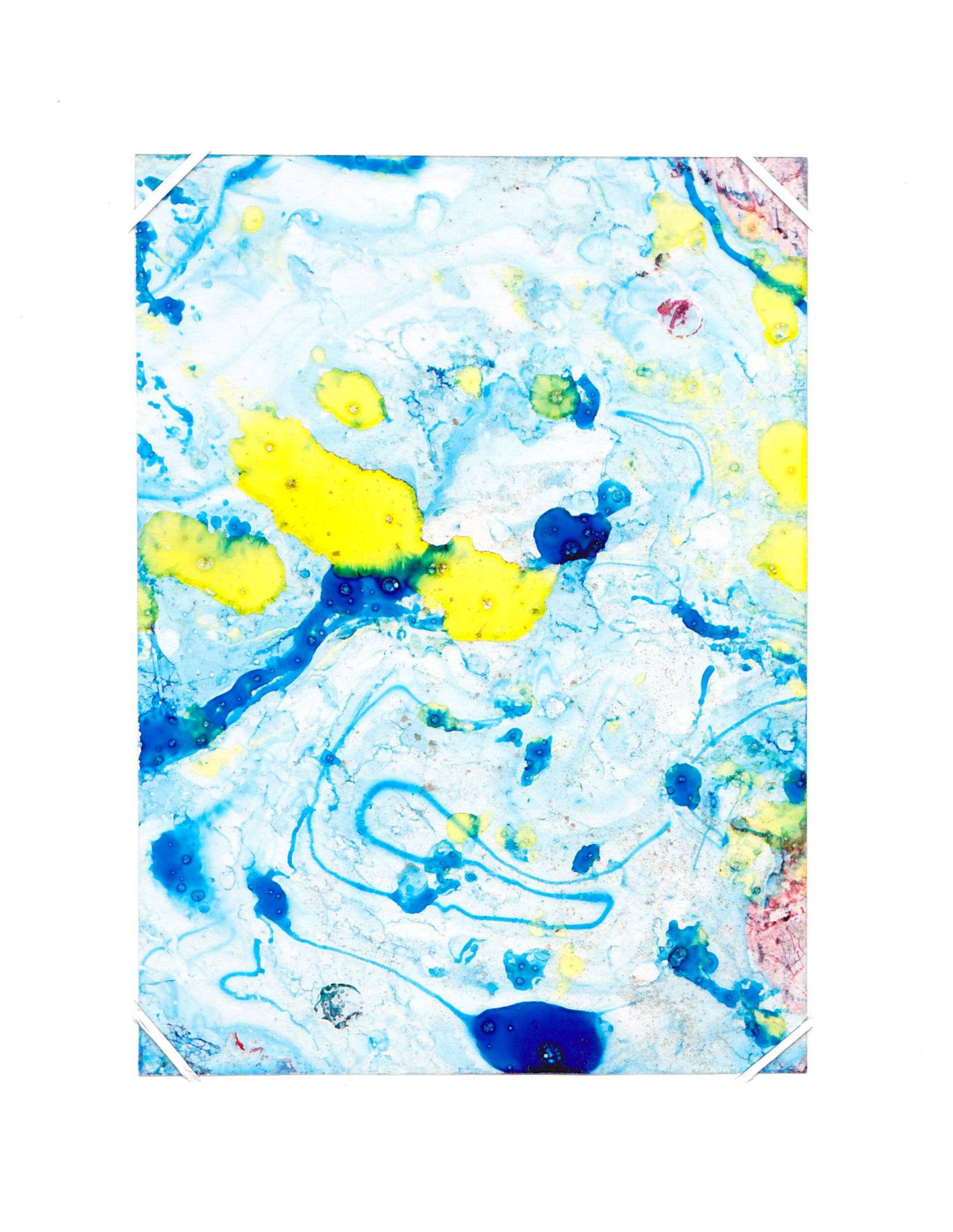 Technique de l’ebru sur transparent, poudre dorée, 18 x 12 cm