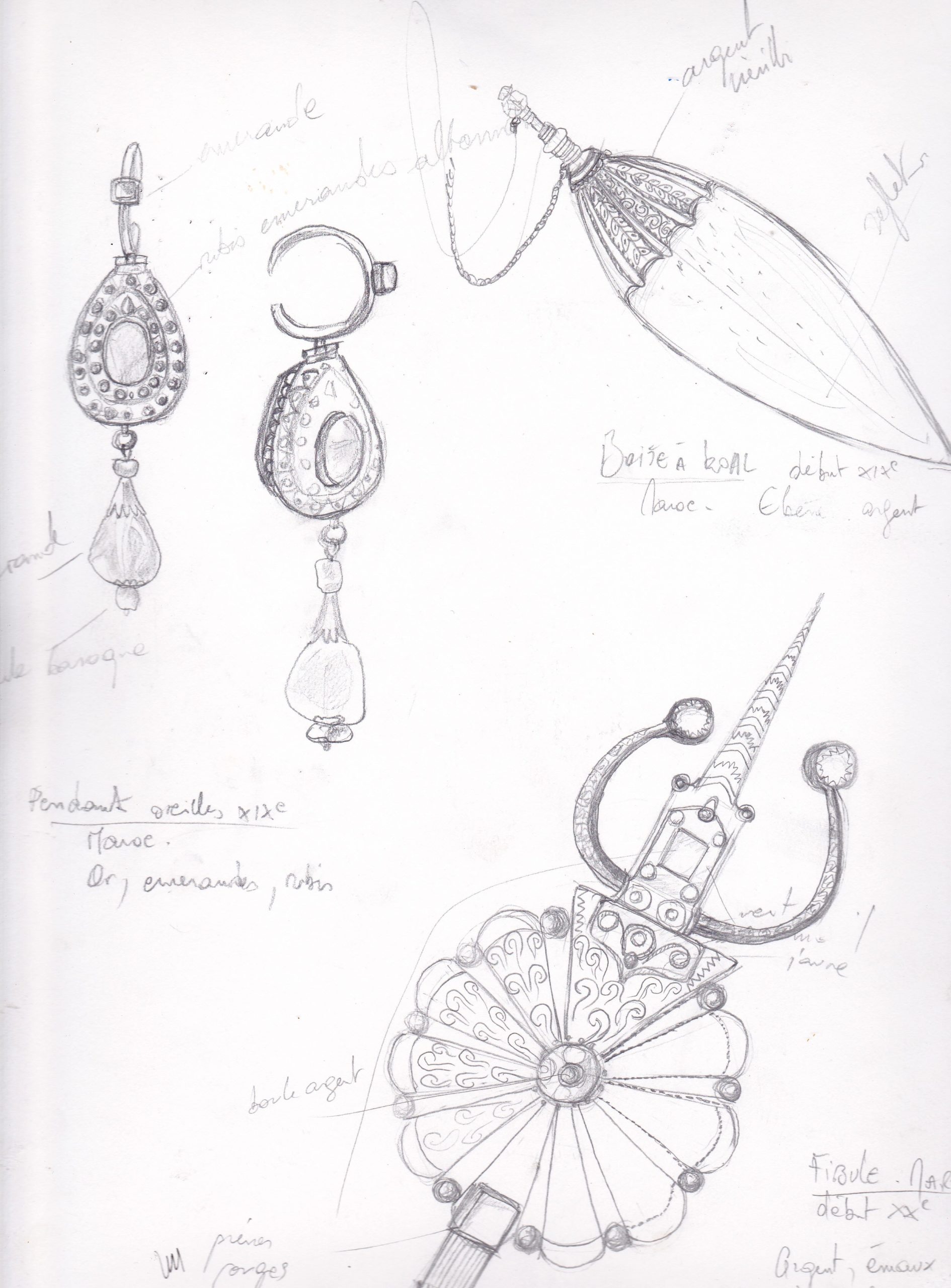 Planche de croquis sur A4, musée des Arts d’Afrique et d’Océanie